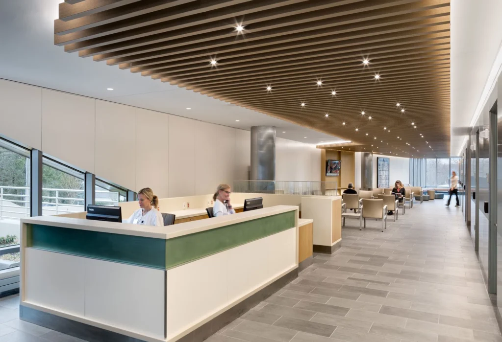 Liberty Doorworks supplied architectural wood doors for Northwell Health in Huntington, outfitting exam rooms, doctors’ offices, reception and waiting areas, as well as laboratory spaces, combining functionality with a refined, professional aesthetic.